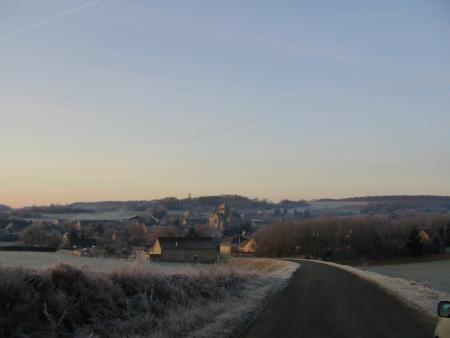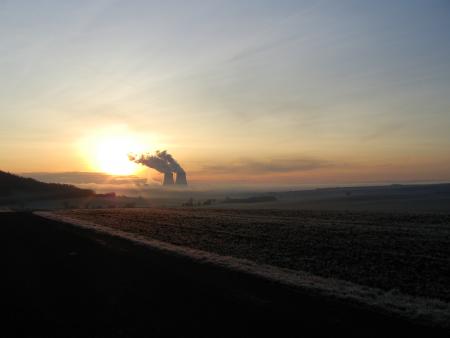 Dimanche matin 08h30, voila le levé de soleil que j'ai vu en quittant mon hameau pour me rendre en haute saone et dans les vosges. Il s'agit de mon ex lieu de travail et la dernière photo est une partie du village(centre)dont dépend le hameau où j'habite. Le soleil éclair une rivière de nuage(j'ai roulé un bon moment dans le brouillard) d'où émerge une partie de la centrale nucléaire: les 2 réfrigérants et leur vapeur d'eau(1 par tranche) et les 2 batiments où se trouve les réacteurs